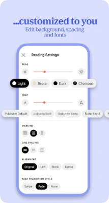 Kobo Books App은 당신의 편안함과 편의성을 최우선으로 설계되었습니다. 텍스트 크기와 글꼴을 자유롭게 조절하고, 야간 모드로 눈의 피로 없이 독서에 몰입하세요. 가로 또는 세로 모드 어떤 자세에서도 편안하게 읽을 수 있습니다. 직관적인 오디오북 플레이어는 재생, 일시정지, 구간 이동을 매끄럽게 지원하며, 취침 타이머 기능으로 편안한 밤을 선사합니다. 모든 기기에서 읽던 곳부터 이어서 볼 수 있도록 Kobo Books App, Kobo 웹 리더, 그리고 Kobo eReader 간에 독서 진행 상황이 자동 동기화됩니다. 또한 영어, 프랑스어, 스페인어, 이탈리아어, 독일어, 네덜란드어, 포르투갈어, 브라질 포르투갈어, 일본어를 포함한 다양한 언어 지원으로 언어 장벽 없이 독서의 즐거움을 누릴 수 있습니다.