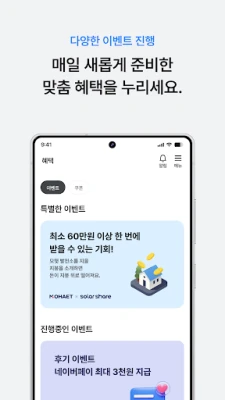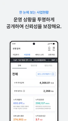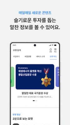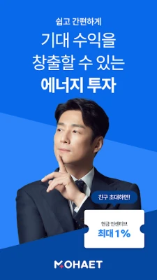 모햇은 당신의 투자 여정을 세심하게 안내합니다. 원하는 기간과 기대 수익률에 맞춰 최적의 투자 상품을 탐색하고, 모햇이 어떻게 수익을 창출하며 사업 안정성을 유지하는지에 대한 궁금증을 명쾌하게 해소해 드립니다. 매달 업데이트되는 발전소 현황과 공식 자료를 통해 투명성을 보장하며, 10대부터 90대까지 다양한 연령대의 실제 투자 후기와 수익 인증을 통해 신뢰를 더합니다. RE100, 전기 요금 결정 원리, 전국 발전소 관리 등 재생에너지에 대한 깊이 있는 지식을 담은 모햇 피드 콘텐츠로 지속 가능한 미래를 함께 이해하고, 다양한 이벤트 혜택까지 놓치지 마세요.
